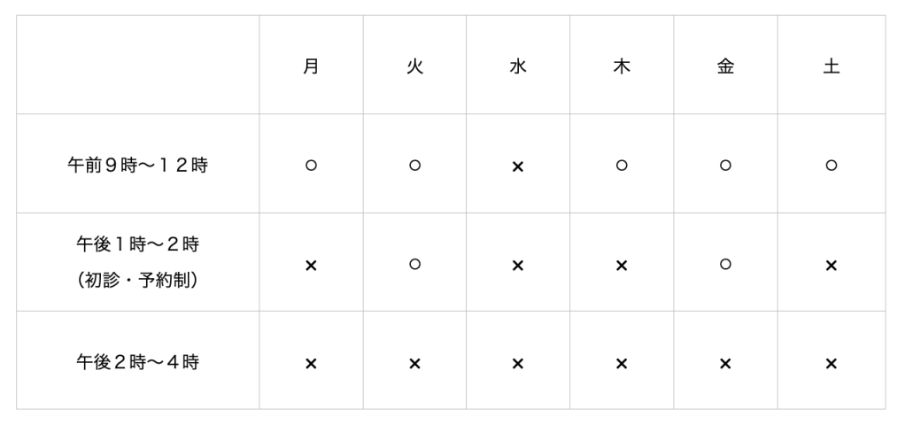 初診の方は火・金曜日の午後2時にお越し頂きます。